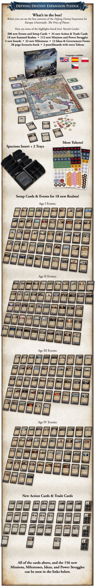 206 New Events and Setup Cards, 112 New Missions and Power Struggles, 32 New Milestones, 34 New Action and Trade Cards, and more.